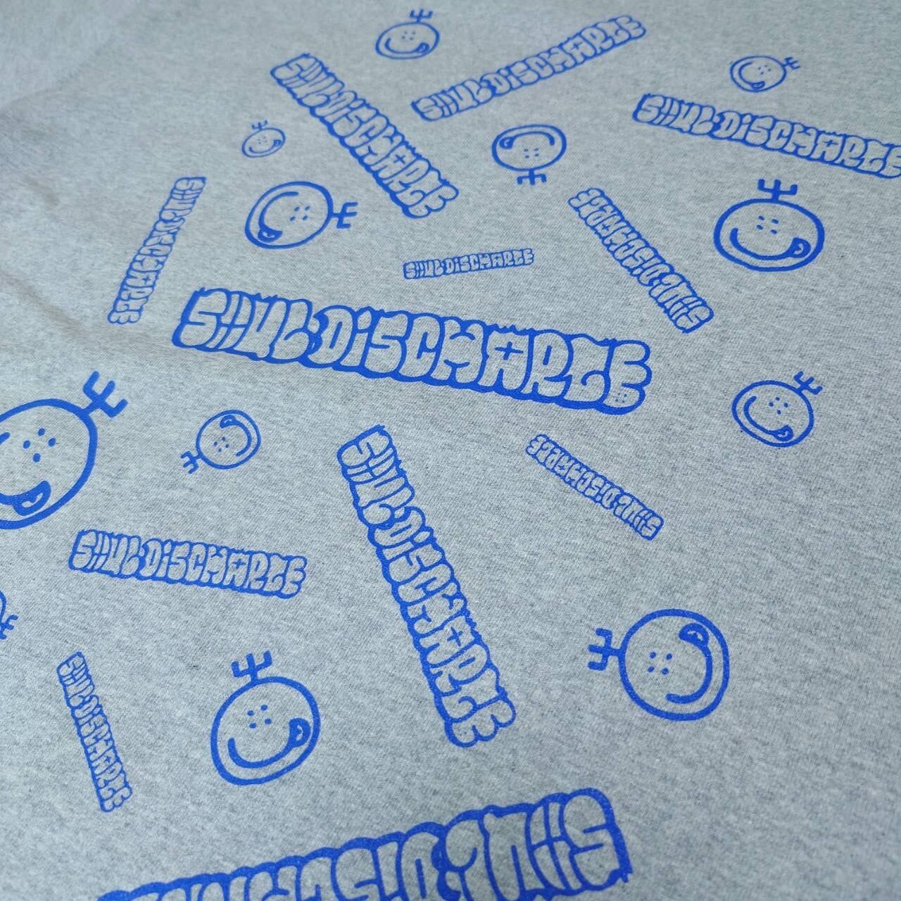 山田丸×SD ポケットTシャツ 灰色ボディ×濃青プリント